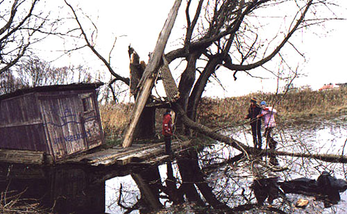 За несколько дней до акции по Латвии пронеслись два разрушительных урагана «Иннокентий-1» и «Иннокентий-2». Таким образом, время и место, с которого стартовала активная часть проекта «Письма», были выбраны с очевидной логикой: след обоих «Иннокентиев» здесь и сейчас проявлен особенно наглядно. Синий кораблик и надпись «Река не закончится» на дровяном сарайчике выполнил художник и парадоксальный мыслитель Марис Субачс. Апелляция к среде, к стихиям вообще свойственна болдерайской культурной традиции новейшего времени.